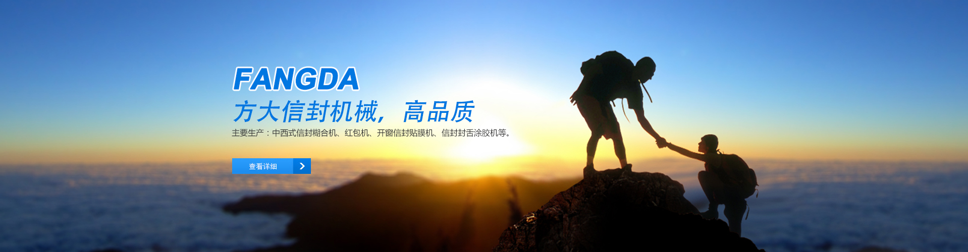 瑞安方大信封機械有限公司,是專業生產信封機糊合設備系列產品的企業,主要產品有:中西式信封糊合機、紅包機、開窗信封貼膜機、信封封舌涂膠機等。實力來自規模,品質源自專業。我廠擁有專業老練的工程設計人員,經驗豐富的生產安裝人員,嚴謹認真的質量檢驗人員,從而保證了所生產機械的優良品質。此外,我廠也將從技術上、性能上不斷改進提高,以更好的滿足客戶的需求?!翱蛻糁辽?,服務為本”是我廠長期一貫的服務理念,從安裝、測試、保養、維修等售后服務,我們會給予客戶充足的信息資訊與技術支持,因此在業界獲得良好的口碑及信譽,您的滿意是我們的榮耀!歡迎您來電查詢、來人參觀,我們一定能給你滿意的答復!秉承“顧客至上,銳意進取”的經營理念,堅持“客戶為先”的原則為廣大客戶提供溫馨的服務。歡迎惠顧!